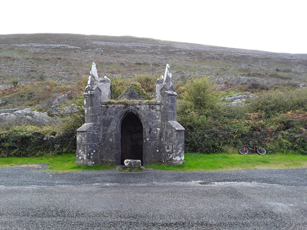 Emphasis switched primarily to the holy well in the landscape. Kevin Whelan notes “a remarkable efflorescence of holy wells” in the 1600s. He lists and dates several well houses constructed in this period. (2018, 51-52). An example of a 17th century well house in our study area is St Fachtna’s in Kilfenora. The inscription states that the well house was built in 1687.